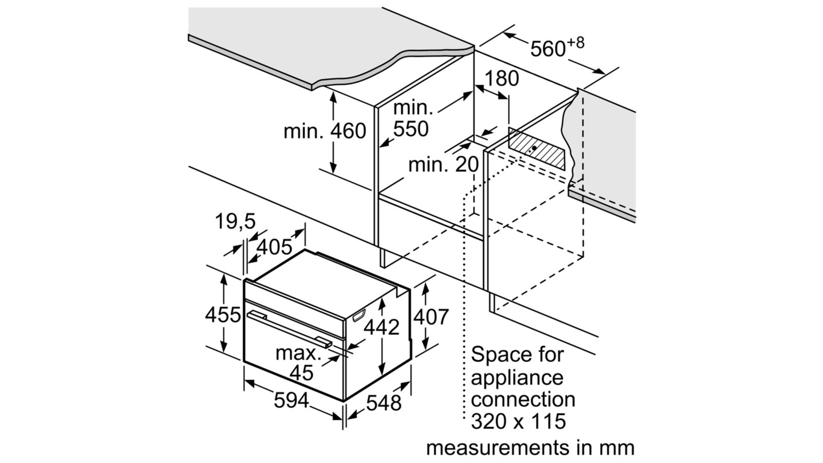 450 – 455C x 560 – 568R x 550S mm